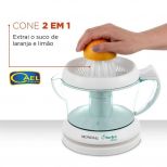 CONE 2 EM 1 + PENEIRA: O cone para extração é ideal para preparar sucos de laranja e limão com mais praticidade e sem gominhos.