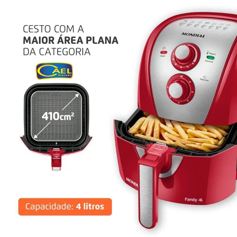 Prepare receitas do café da manhã ao jantar com a Air Fryer Mondial. E o melhor: de forma prática, rápida e saudável! A Tecnologia de Circulação de Ar Quente cozinha, frita (a ar), assa ou tosta os alimentos sem precisar adicionar óleo ou manteiga. Aliada à alta potência, a tecnologia da Fritadeira a Ar também possibilita rapidez nos preparos. O cesto quadro com capacidade de 4 litros acomoda melhor os alimentos, permitindo assar por igual.