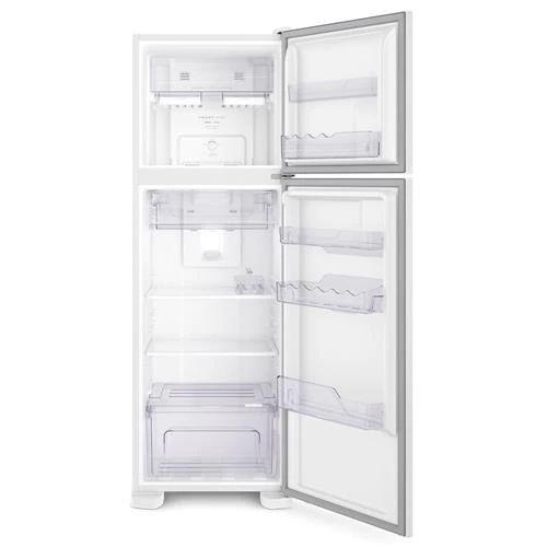 Com suas duas portas, seu design moderno conta com puxador ergonômico de pegada confortável. Além disso, possui painel de controle externo que facilita o acionamento das funções do refrigerador. Já a parte interna conta com o espaço generoso com prateleiras retráteis no freezer, gavetões para frutas e legumes, cesta porta ovos, porta latas na porta, espaço extra frio.