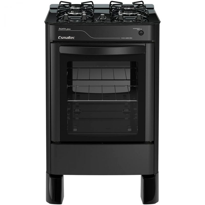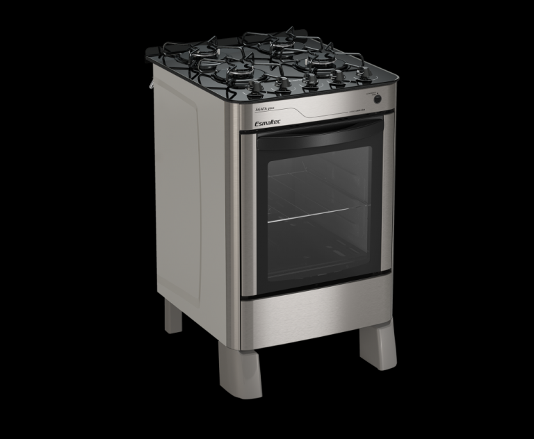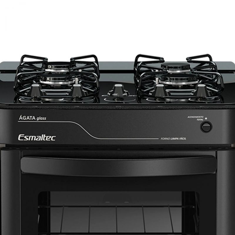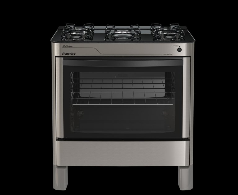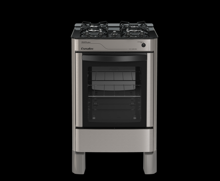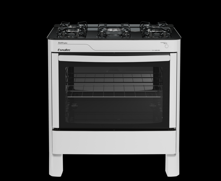O Ágata Glass possui o acabamento Limpa Fácil, um revestimento no interior do forno de 56 litros que evita o acúmulo de gordura nas paredes. Outra praticidade que esse modelo da Esmaltec oferece é o acendimento automático. Isso significa que, para acender tanto as bocas do fogão, quanto o forno, basta girar o botão e apertar o acendedor.