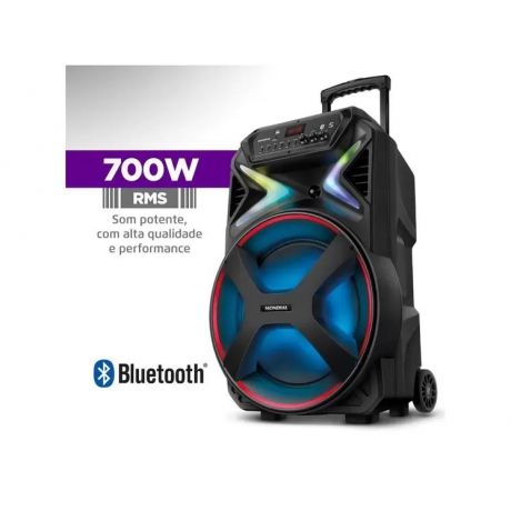 A Caixa Amplificada Connect Light Plus CM-700 vai turbinar a sua festa! Os 700W RMS de potência e alto falante 15 polegadas vão garantir um som potente, com alta qualidade e performance. É possível duplicar o som com a função TWS (True Wireless Stereo): conecte duas caixas amplificadas CM-700, sem o uso de fios. Incrível, né? A caixa ainda tem transmissão via Bluetooth e bateria recarregável e bivolt. Saiba mais sobre a Caixa Amplificada CM-700 da Mondial: