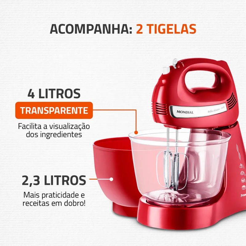 A Batedeira Bella Massa Inox Premium B-29-NP garante performance, praticidade e precisão em suas receitas! Possui 500W de potência, 4 velocidades para controlar o tipo de massa a ser preparada e função turbo para aumentar o desempenho. Acompanha 2 tigelas, com capacidade de 4 e 2,3 litros. Além disso, os batedores em aço cromado, além de mais duráveis, deixam a massa no ponto certo.