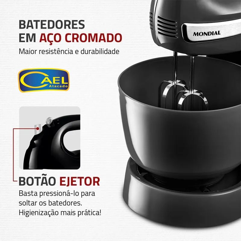 SISTEMA EXCLUSIVO DE FIXAÇÃO: Sistema desenvolvido pela Mondial para facilitar a montagem da batedeira e sua limpeza.