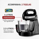 EXCLUSIVA TIGELA TRANSPARENTE: A tigela de 4 litros é transparente e facilita a visualização dos ingredientes durante o preparo.
