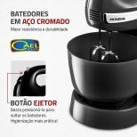 BOTÃO EJETOR: Basta pressioná-lo para soltar os batedores. Higienização mais prática e fácil.