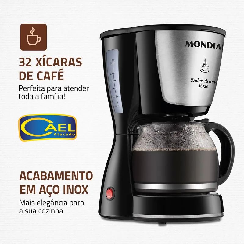 A Cafeteira Elétrica Mondial Dolce Arome C-32-32X tem capacidade para servir até 32 xícaras de café.