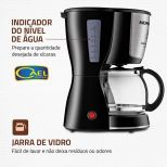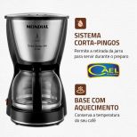 - Sistema corta-pingos: a função permite retirar a jarra ainda durante o preparo do café, evitando respingos, sujeira e desperdício;