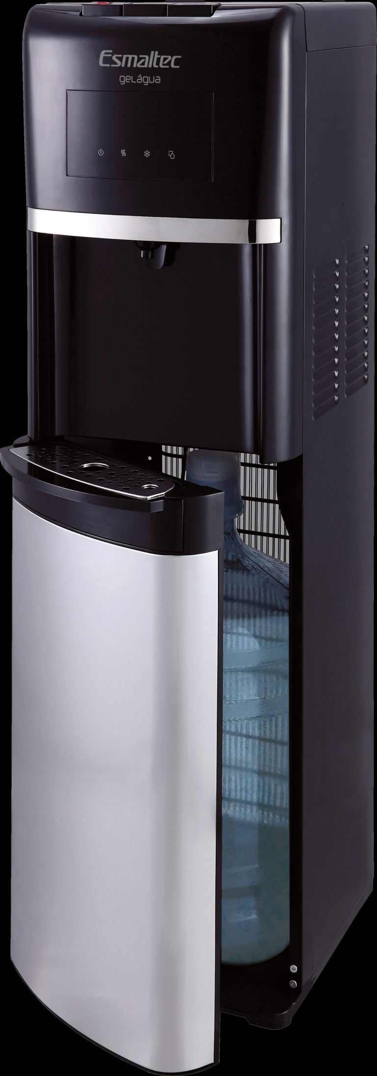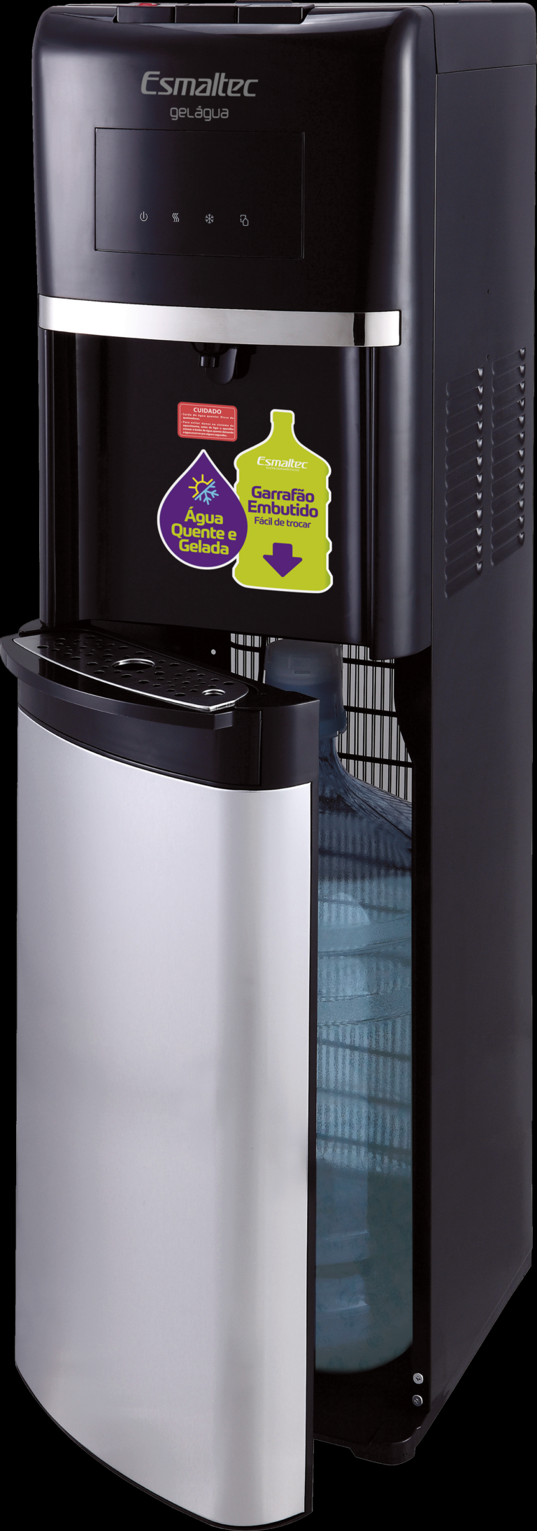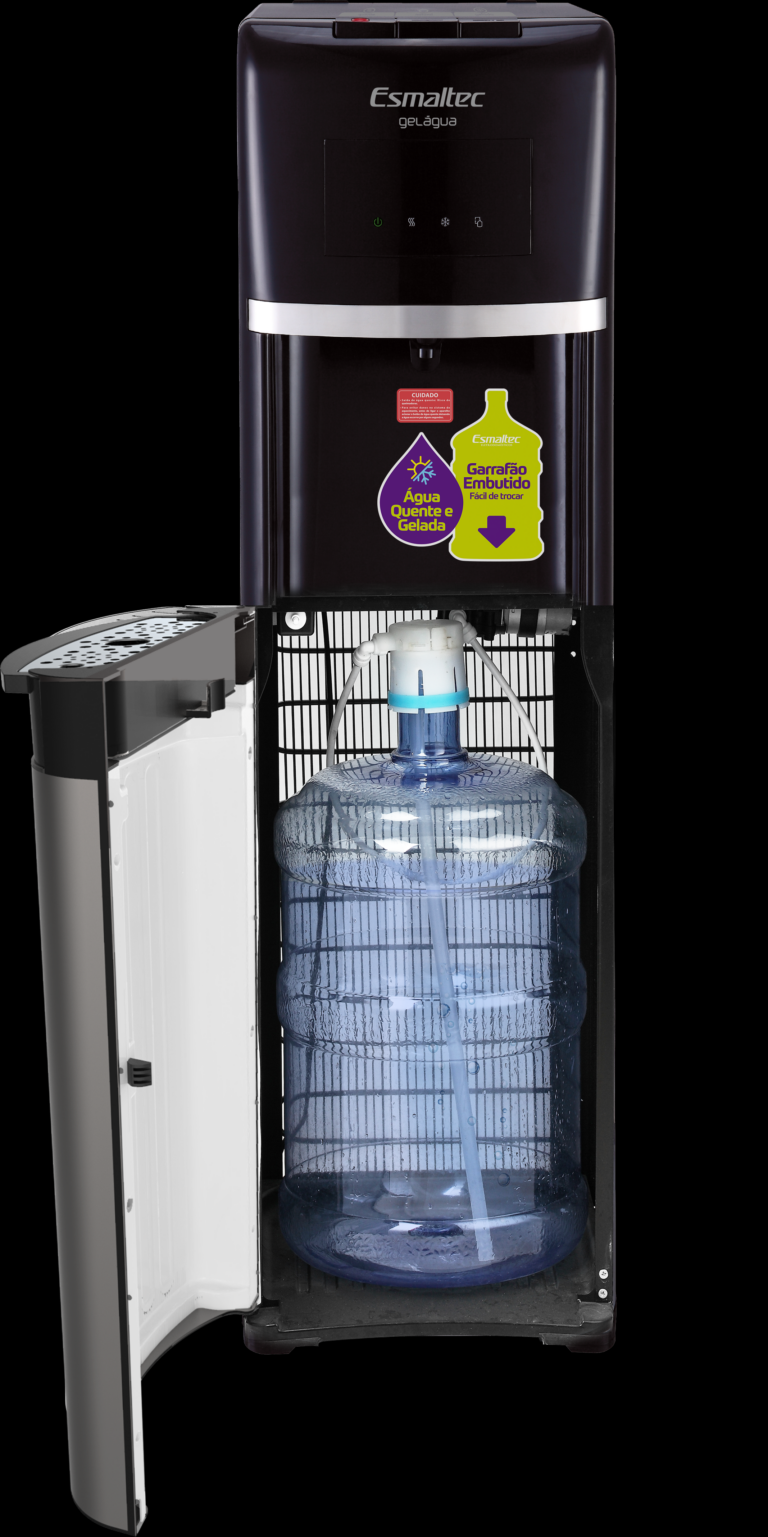 Garrafão de água embutido que facilita a reposição, sem a necessidade de levantar peso.