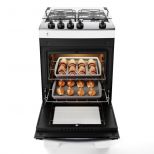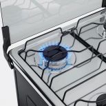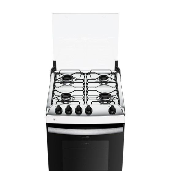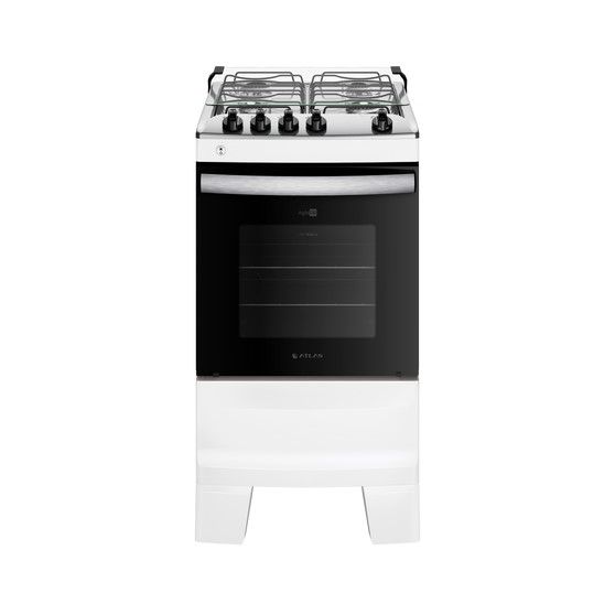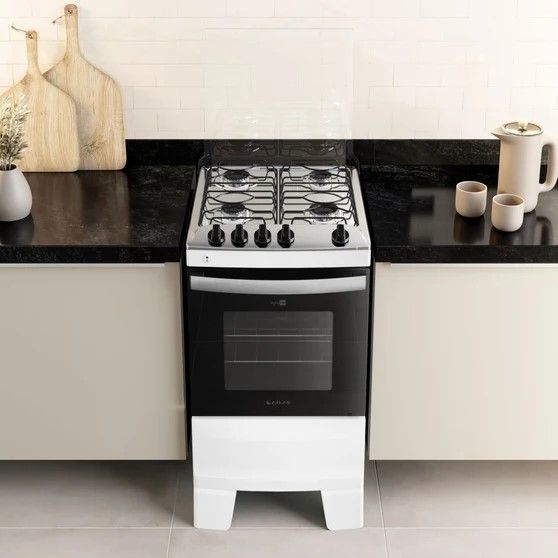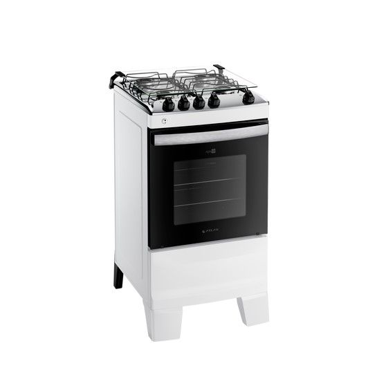 A versão 4 bocas conta com 2 queimadores semirrápidos de 1,67kW, 2 queimadores rápidos de 2,0kW e forno com 50 litros de capacidade.