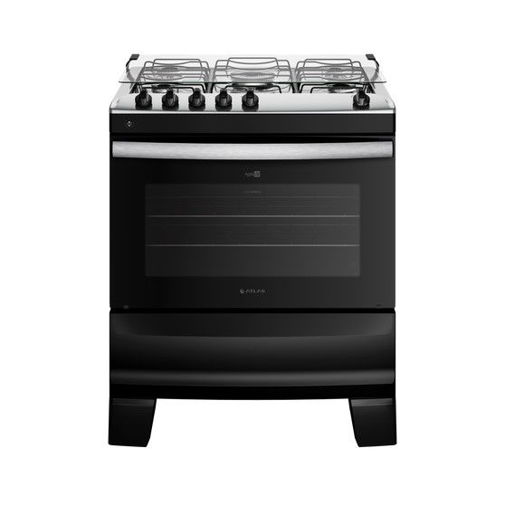 FOGÃO 5 BOCAS PRETO COM MESA INOX ATLAS AGILE UP BIVOLT