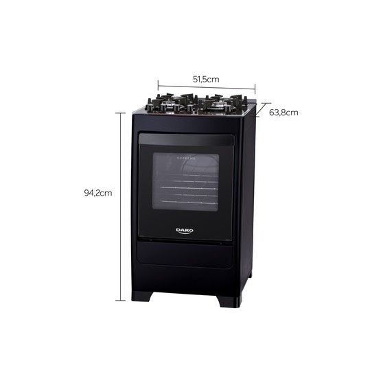 FOGÃO DAKO SUPREME GLASS 4Q PT