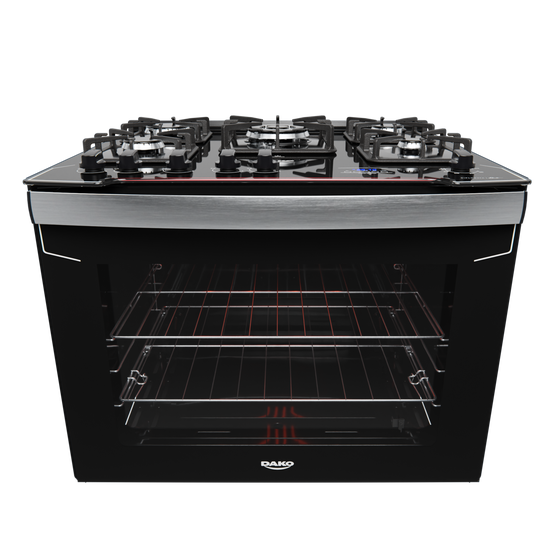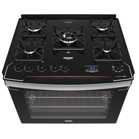 A versão 5 bocas conta com 1 queimador auxiliar de 1,0kW, 2 queimadores semi rápidos de 1,7kW, 1 queimador rápido de 3,0kW e 1 queimador Tripla Chama de 3,3kW.