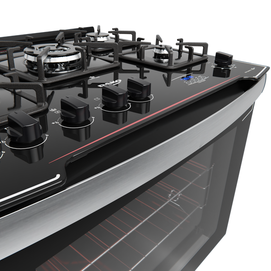 O forno é um show a parte! É o maior da categoria - 119,5 litros - e tem função grill para deixar seus pratos dourados e ainda mais saborosos e um timer touch para não faltar precisão. Possui também puxador de alumínio escovado, visão ampla que permite enxergar tudo o que tem dentro do forno, vidro duplo temperado sendo o interno removível, e revestimento Limpa Fácil, para facilitar ainda mais na hora da limpeza.