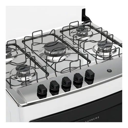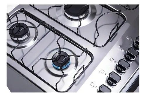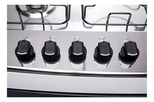 A versão 5 bocas possui 2 queimadores de 1,7kW, 2 queimadores família de 2,0kW e 1Q Mega Chama 2,5kW.
