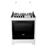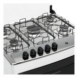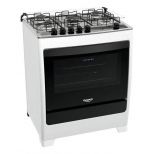 Com mesa de inox top control, que além de ergonômica é resistente, o fogão também conta com acendimento automático, grades duplas de aço esmaltado - que proporcionam maior estabilidade, um queimador mega chama, tampa de vidro temperado e lâmpada de forno.