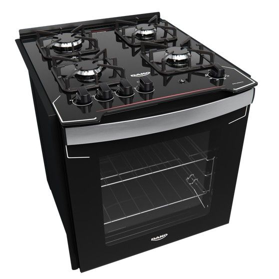 Fogão de Embutir 4 Bocas Preto com Mesa de Vidro Dako Diplomata: design moderno e sofisticado para uma experiência completa de cozinhar