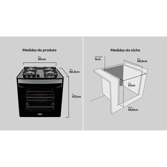 - Grades do Forno: 1 Grade autodeslizante e 1 deslizante