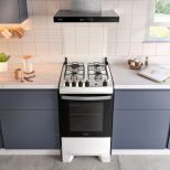 O puxador em alumínio escovado, além de ergonômico, dá um toque de sofisticação no design. A prateleira deslizante torna ainda mais fácil colocar e retirar suas receitas com total praticidade. O visor amplo do forno permite acompanhar o preparo sem precisar abrir a porta, e o acabamento Limpa Fácil deixa a limpeza ainda mais rápida e descomplicada.