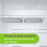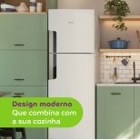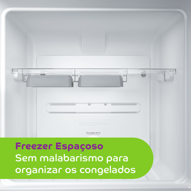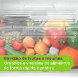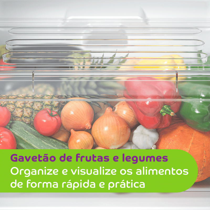 A Geladeira também conta com Iluminação em LED, Função Turbo, Forminhas de Gelo e Porta Ovos.
