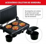Suas placas são antiaderentes e o equipamento acompanha um termostato com controle de temperatura. Prepare carnes, grelhados e muito mais!