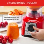 3 velocidades + função pulsar: Ajuste facilmente a textura das suas receitas com três velocidades e a função pulsar. Perfeito para triturar gelo, misturar massas leves ou preparar sucos e vitaminas na consistência ideal com muito mais precisão.