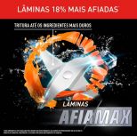 Lâminas AFIAMAX 18% mais afiadas: Com 4 lâminas de aço inox ultraafiadas, tritura até os ingredientes mais duros com precisão. Projetadas para manter o fio por mais tempo, garantem eficiência superior e cortes perfeitos em todas as suas receitas.